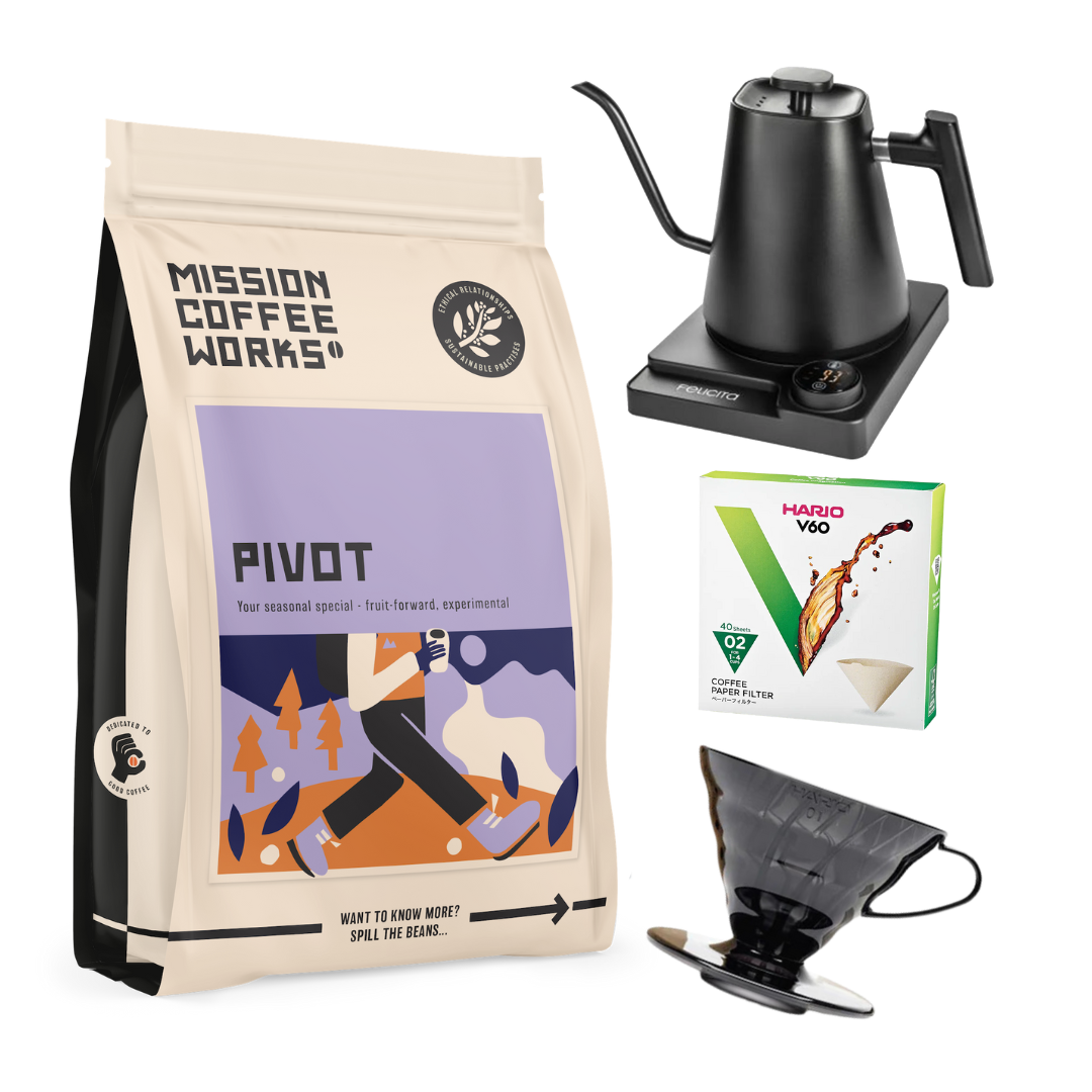 Pick your coffee and we'll send it along with your Hario V60 dripper, filters and Felicita electric kettle.