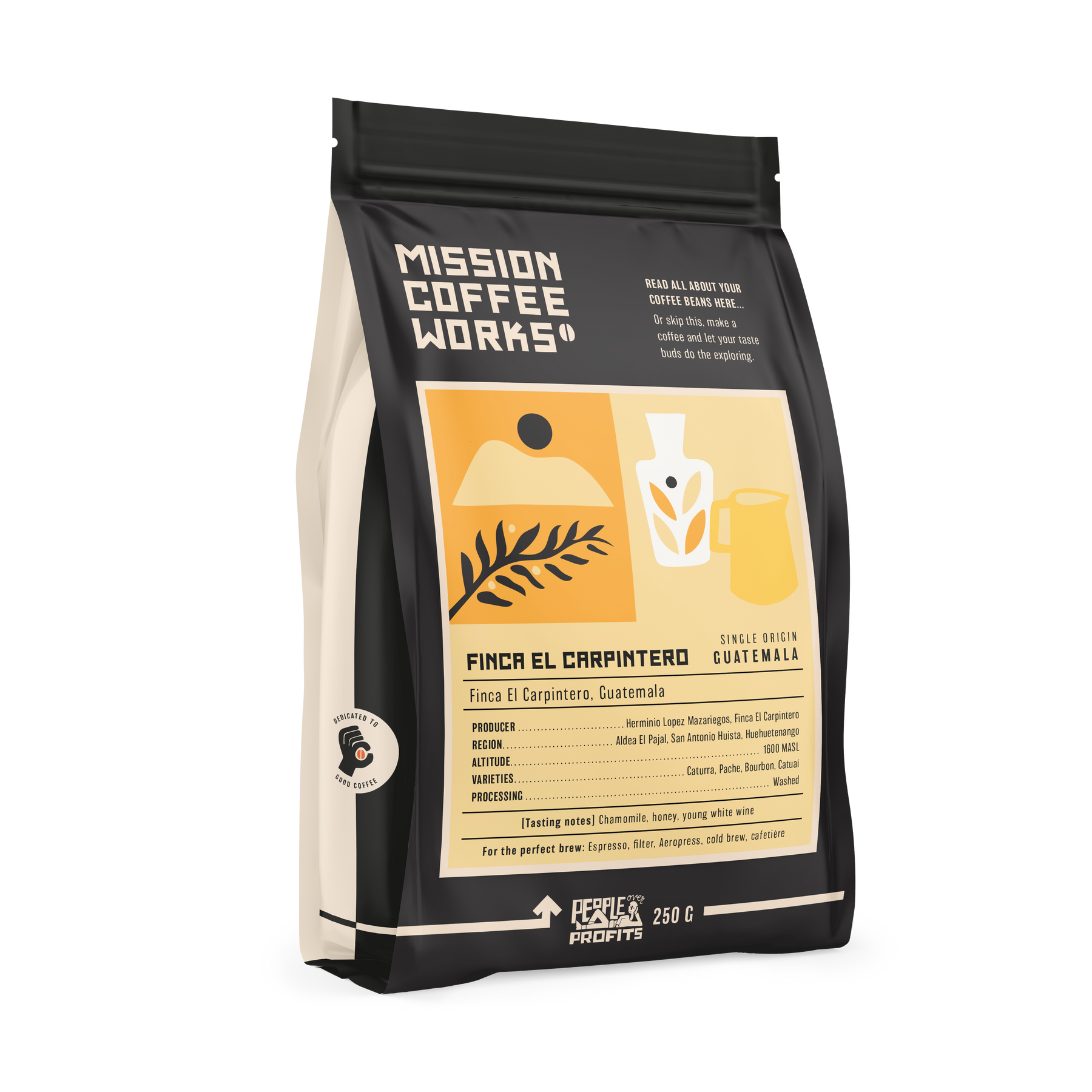 Regular price £13.00This coffee is produced by Herminio Lopez Mazariegos in the Huehuetenango region of Guatemala. He’s been in the coffee fields from when he was a little boy where his dad used to teach him how to work the farm. He inherited the land about 20 years ago and continues to work it to sustain his family.